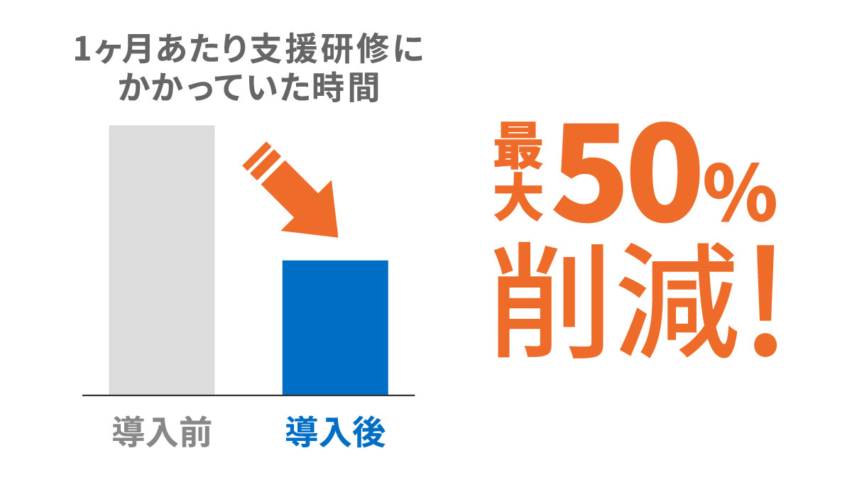 支援員研修では、shouin上のコンテンツを使って各施設で研修を行うことにより、研修会場までの移動時間や新人オリエンテーションなどの時間的コストについて、最大で月間約50%ほどの時間が削減され、保育や業務の時間に充てることができるようになっています。学童施設の先生方の研修機会の格差もなくなり、より質の高い保育を実施できるようになりました。
