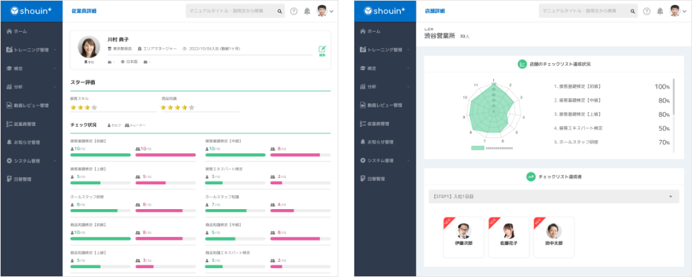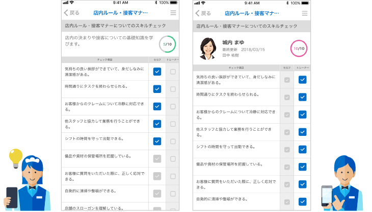 全店舗統一のチェックリストで、習得済みのスキルと今後学ぶべき業務が明確化されます。