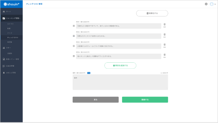 本社で一括登録されたチェックリストを使用することで、全ての従業員が同じ教育を受けることができます。