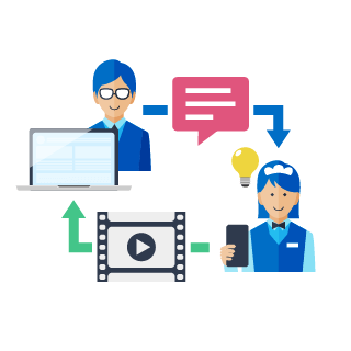 現場の報告を動画で送信。管理者はその動画に対する評価を行うことができます。