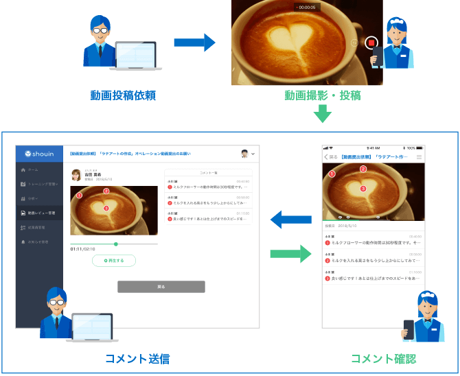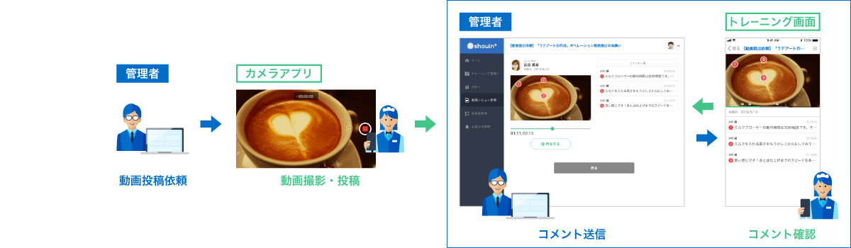 管理者は店舗に直接訪問することなく全国の店舗の育成状況を把握でき、改善指示を出すことが可能です。